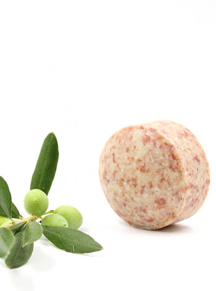 Αυτό το σαπούνι της Vis Olivae με το γλυκό άρωμα, εκτός από έξτρα παρθένο ελαιόλαδο και έλαιο καρύδας, περιέχει και μια σειρά πολύτιμων συστατικών.